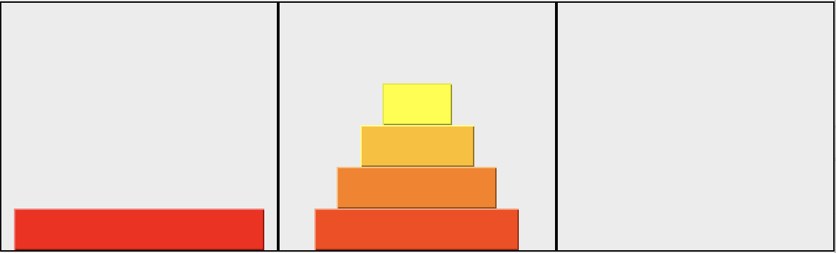 Pour résoudre cette tâche, il est intéressant de procéder de manière récursive sur la taille de la pyramide à déplacer. En effet, déplacer une tour de taille 1 (voire même 0) est trivial. Il s'agit du cas de base.